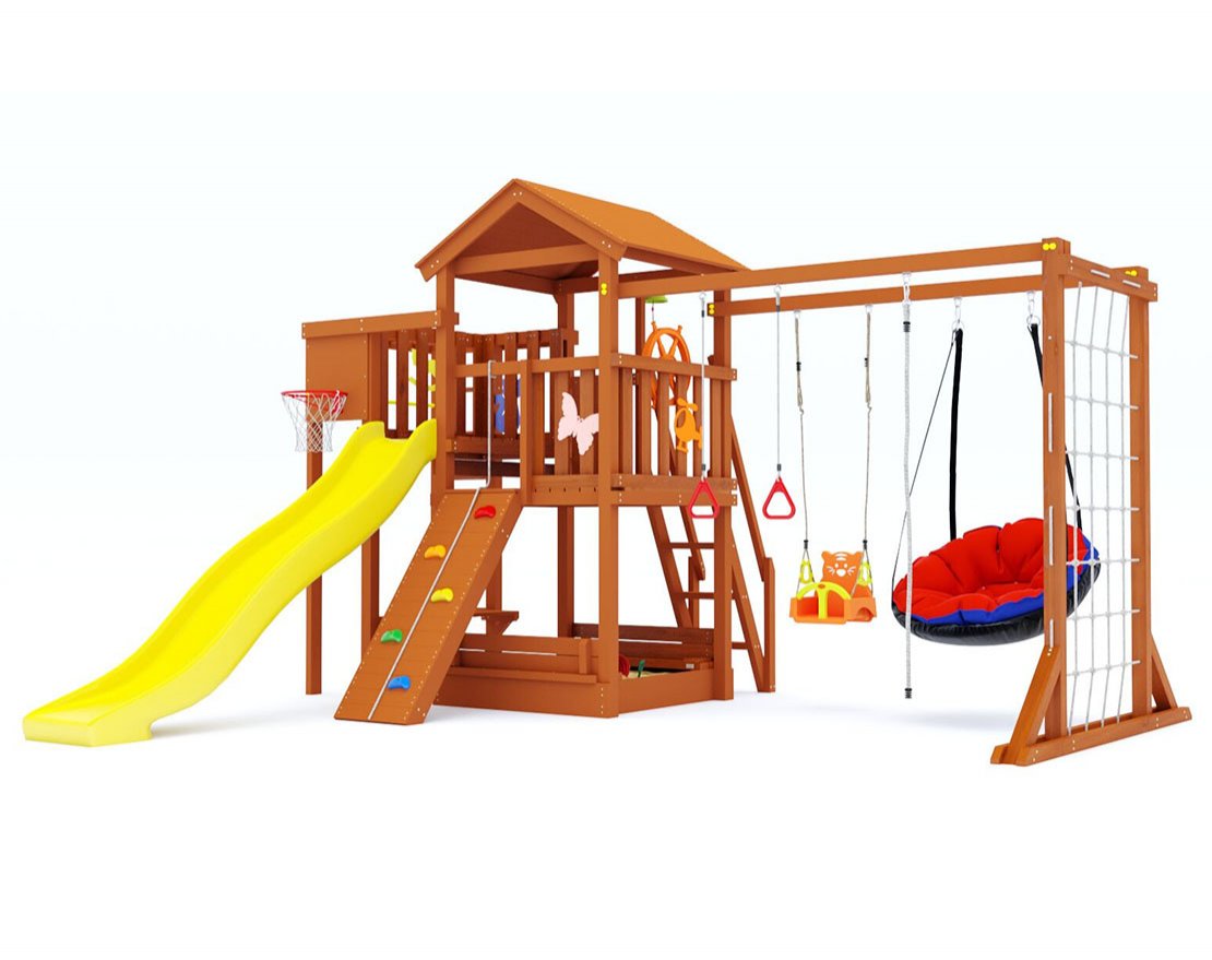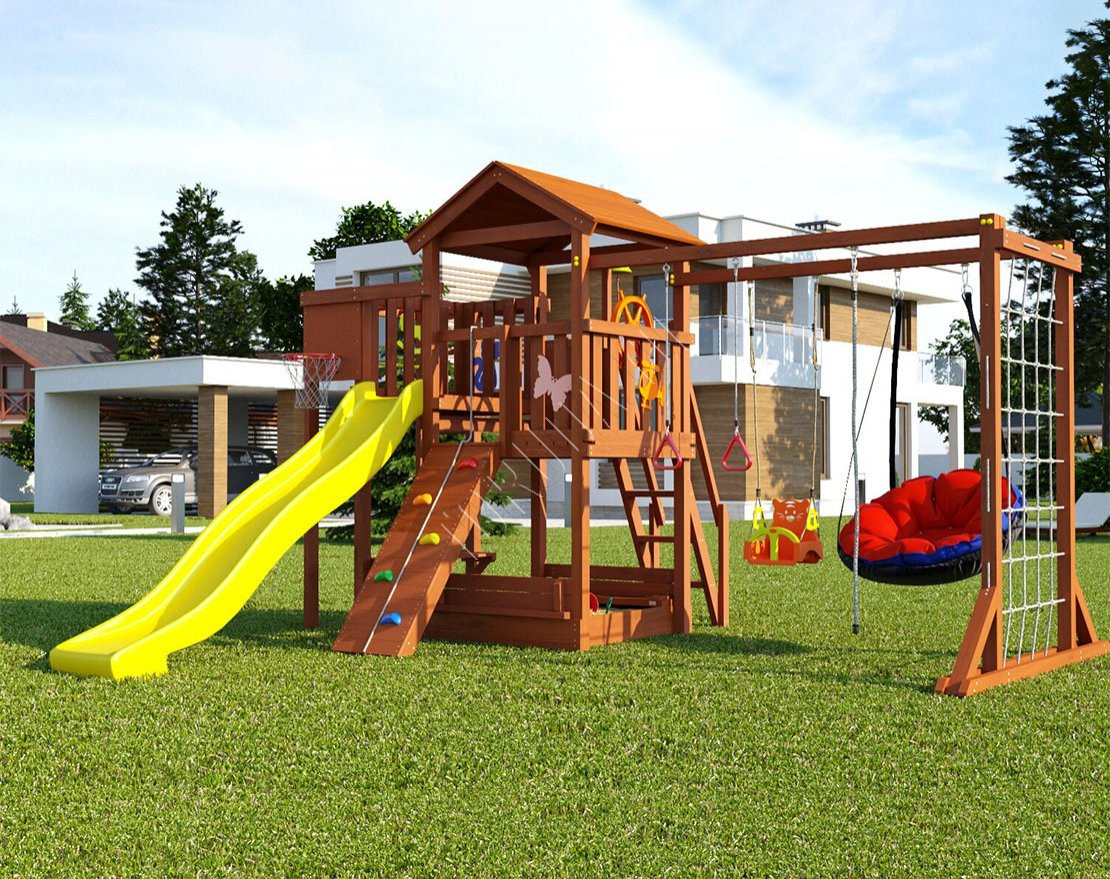 Гарда 4 Вайлэнд площадка вмещает несколько детей дошкольного и младшего школьного возраста. Удобное размещение – участок дачного дома. Ее легко собрать самостоятельно, можно заказать сборку.