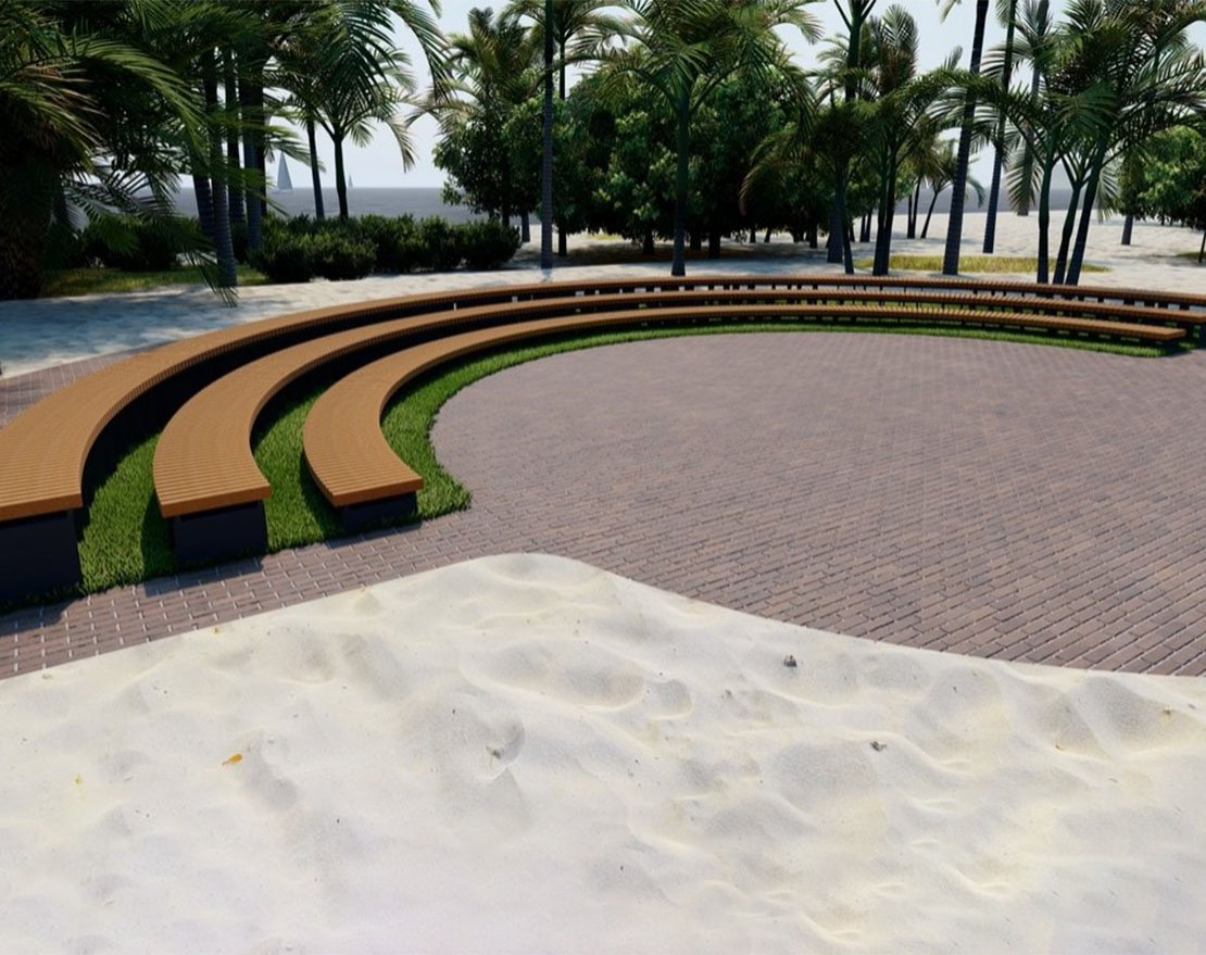 Радиус рассчитывается по внешней стороне скамейки