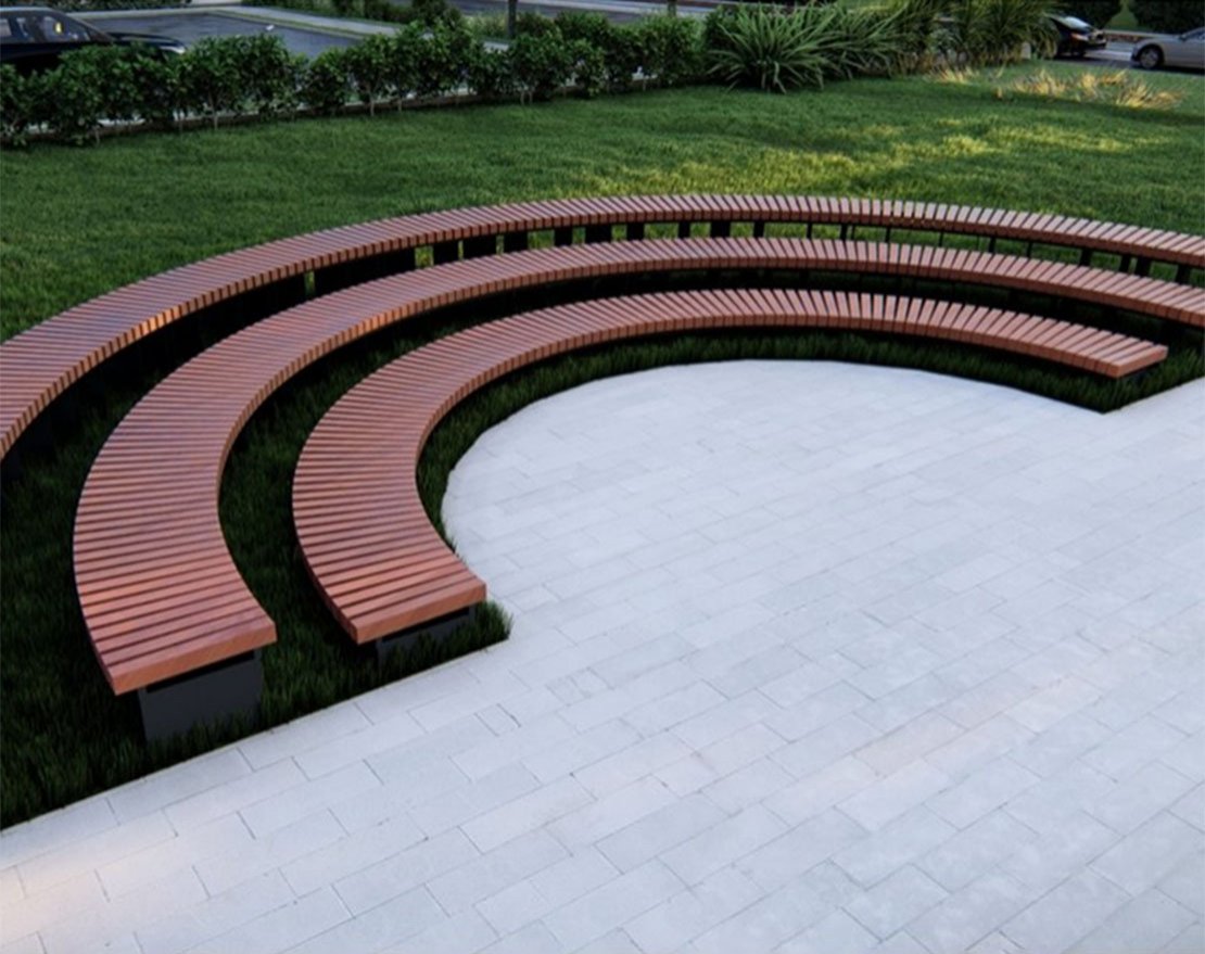 Радиус рассчитывается по внешней стороне скамейки