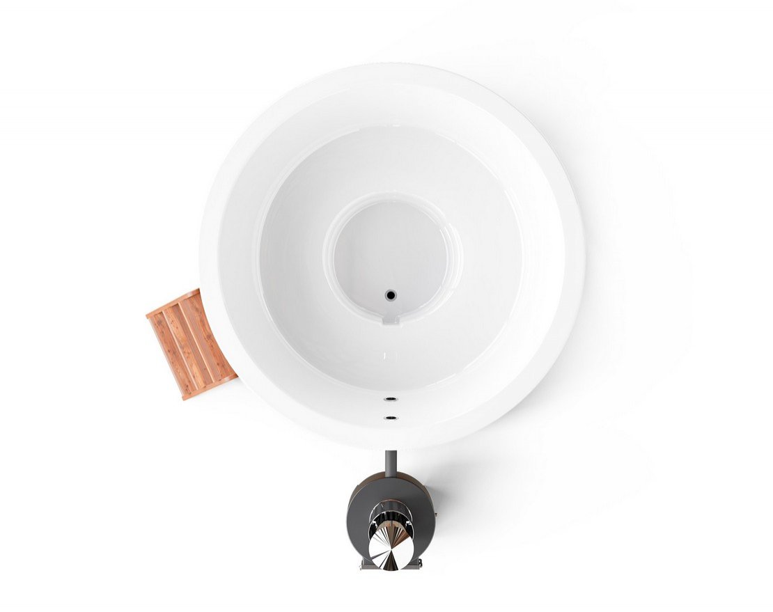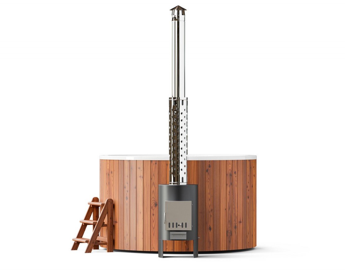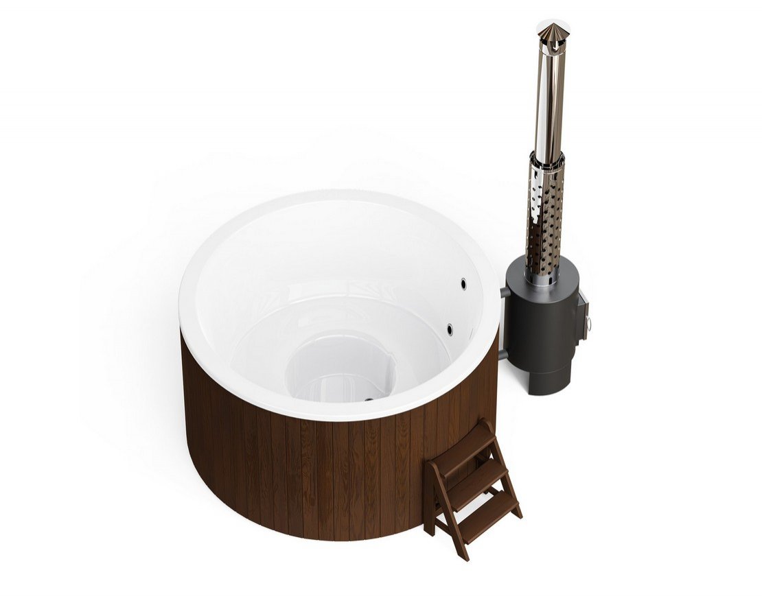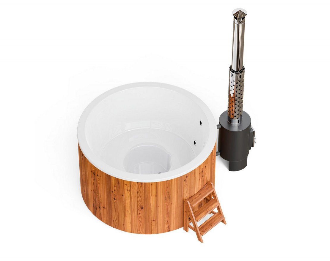 Внешняя печь мощностью 40 кВт нагреет воду до комфортной температуры за 2-2,5 часа.Остается зажечь свечи, добавить в воду масло лаванды, включить приятную музыку и наслаждаться релаксом.