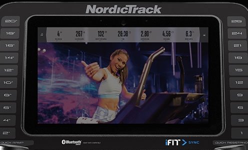 Этот экран позволит вам полностью испытать захватывающие тренировки с iFit®*. Это приложение, интегрированное в тренажер, предлагает вам обучающие видеоролики со всего мира, а так же групповые занятия с популярными персональными тренерами. Более 15 тем тренировок (HIIT, ходьба, бег и т.п.) на любой вкус.